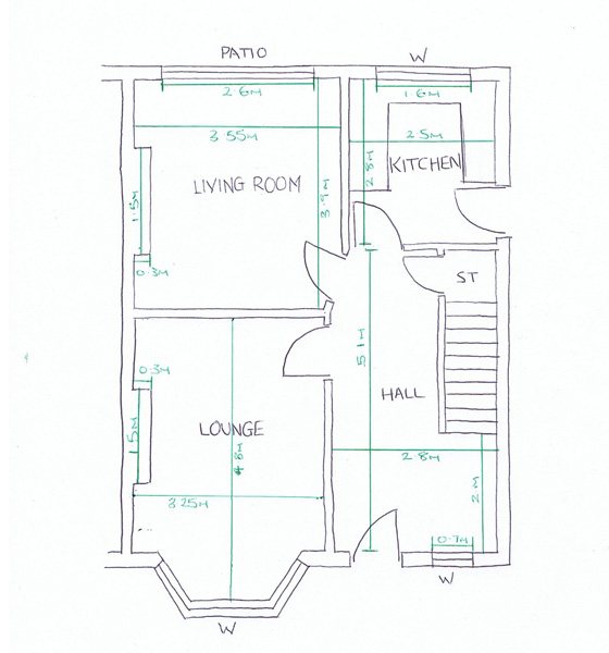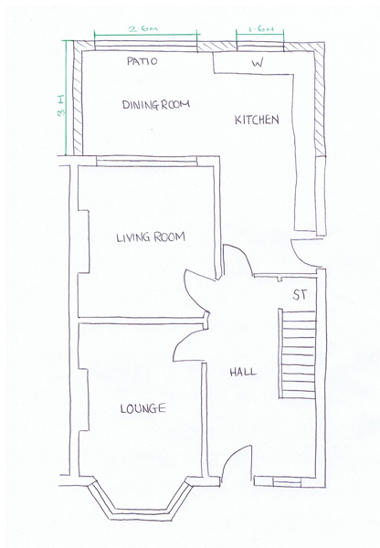 - > A sketch plan of the relevant part of the existing property, with room measurements